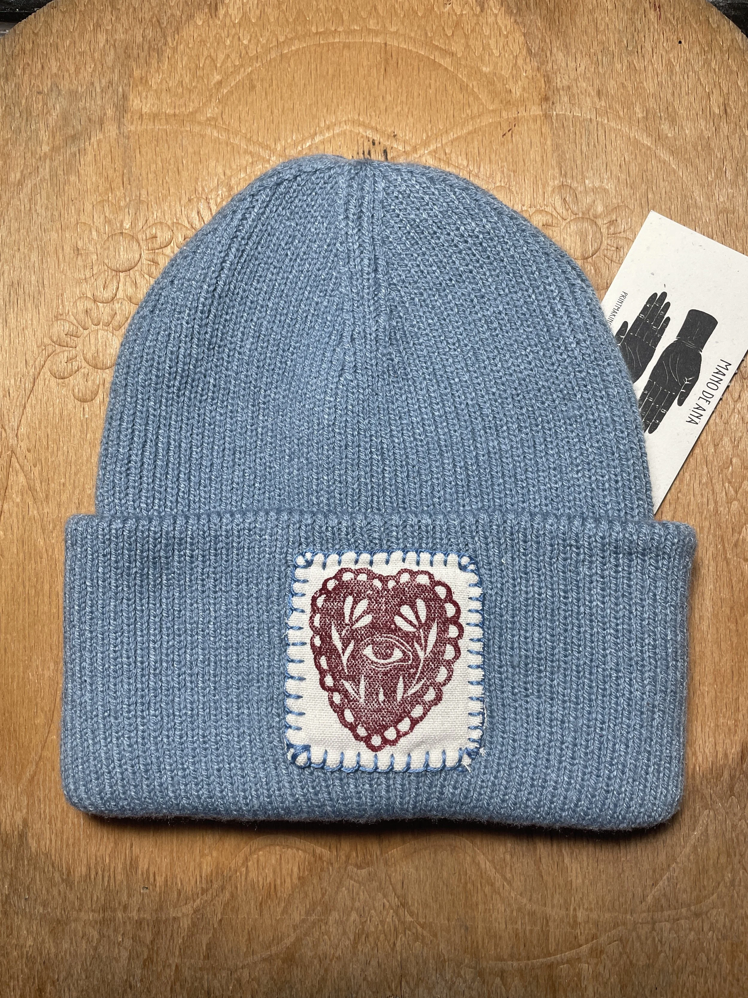 SACRED HEART Mint Beanie with Handprinted Linocut Patch